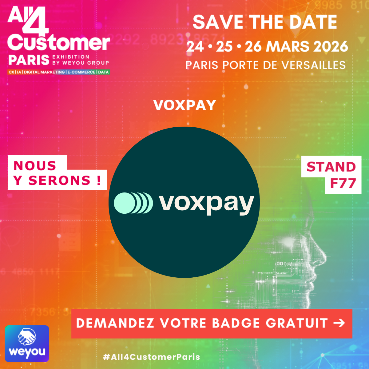 Comme chaque année, c'est avec un immense plaisir que la team Voxpay vous donne rendez-vous, du 24 au 26 mars à All4Customer 2026.